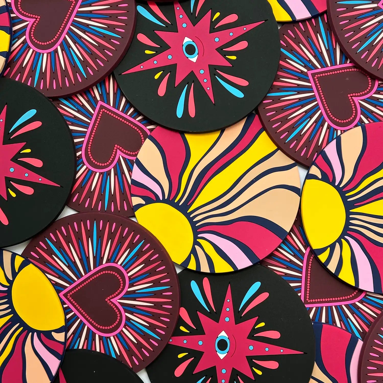 Vibrant design and cosmic inspiration combine in coasters that will elevate your