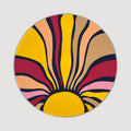 ● Set of three coasters featuring vibrant bohemian designs: a radiant